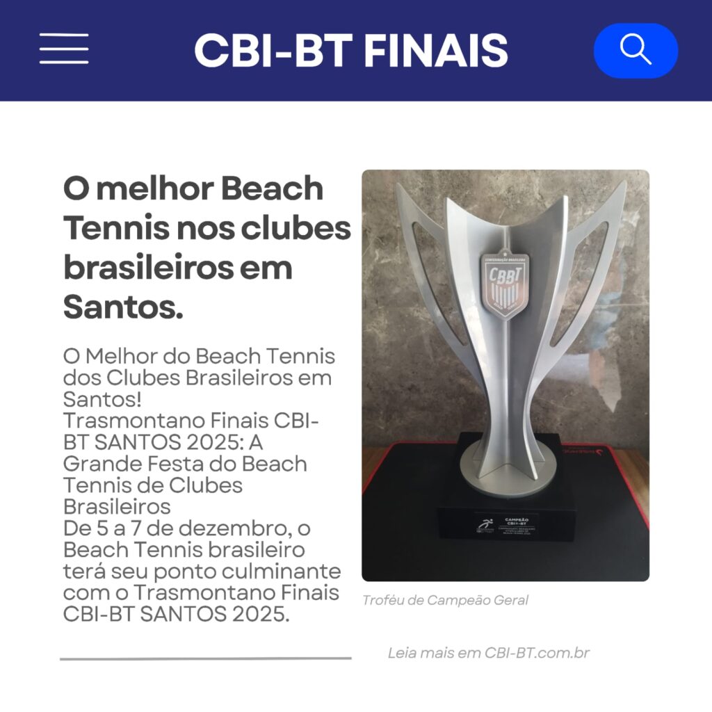 Trasmontano Finais CBI-BT SANTOS 2025: A Grande Festa do Beach Tennis de Clubes BrasileirosDe 5 a 7 de dezembro, o Beach Tennis brasileiro terá seu ponto culminante com o Trasmontano Finais CBI-BT SANTOS 2025. A Praça das Bandeiras, em Santos (SP), será o palco da grande final da primeira temporada do Circuito Brasileiro Interclubes de […]